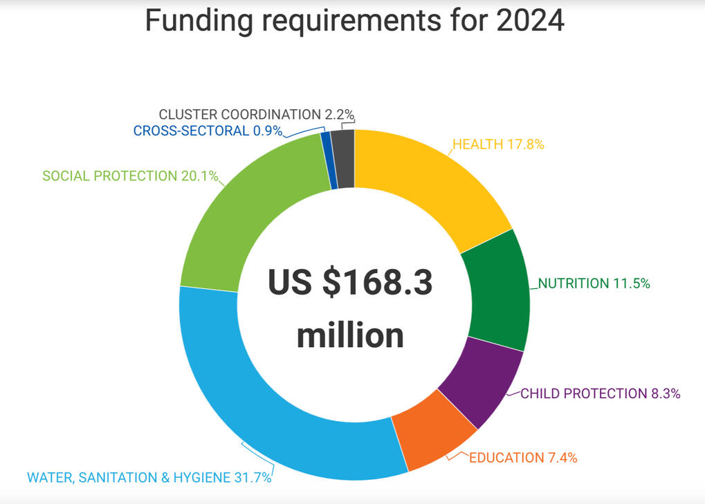 UNICEF requires $168.3 million for its response in the State of Palestine to sustain gender-responsive WASH, health, child protection and education services in the Gaza Strip and the West Bank, and fund multipurpose cash assistance